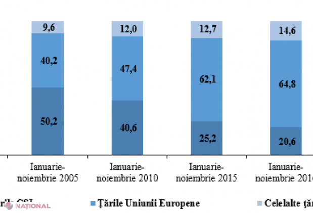 Valoarea mărfurilor exportate de R. Moldova în 11 luni ale anului 2017 a crescut cu aproap...