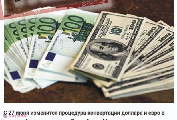 FALS: Din 27 iunie, moldovenii nu vor mai putea schimba dolari şi euro