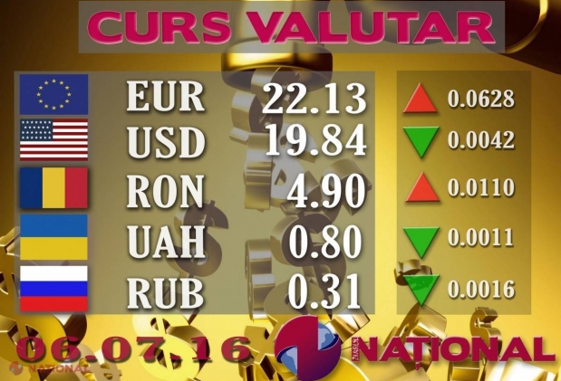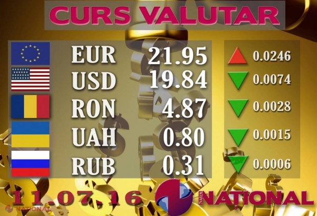 Banca Națională a Moldovei a stabilit pentru ziua de azi un curs oficial de 21.99 de lei pent...