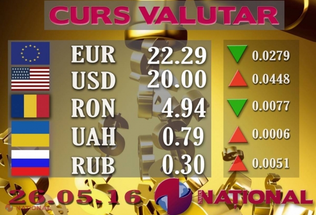 Banca Națională a Moldovei a stabilit pentru ziua de azi un curs oficial de 22.29 de lei pent...