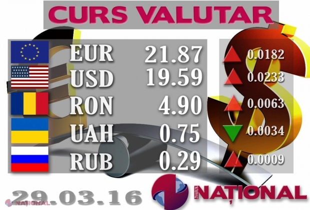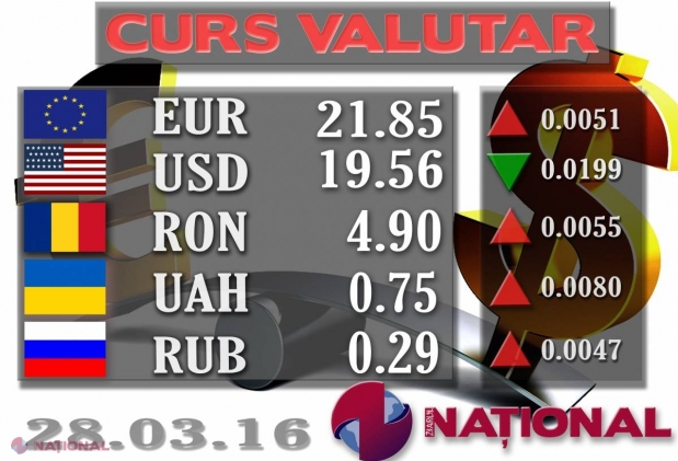 Banca Națională a Moldovei a stabilit pentru ziua de azi un curs oficial de 21.85 de lei pen...