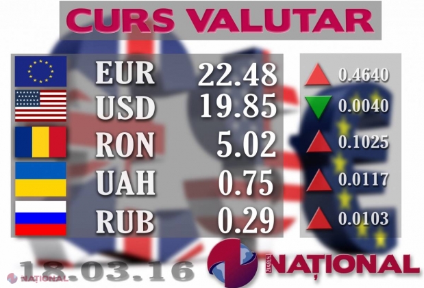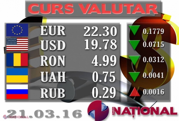 Banca Națională a Moldovei a stabilit pentru ziua de astăzi un curs oficial de 22.26 de lei ...