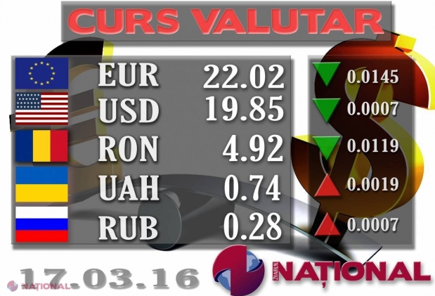 Banca Națională a Moldovei a stabilit pentru ziua de astăzi un curs oficial de 22.03 lei pen...