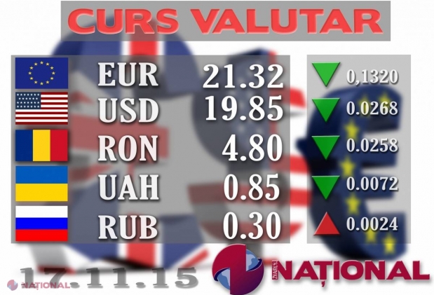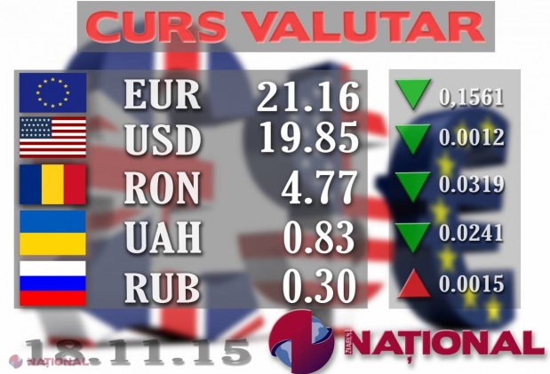 EURO și DOLARUL, în scădere. Cursul oficial pentru marți, 17 noiembrie