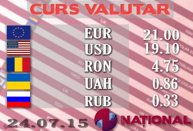 Rata oficială de schimb pentru EURO și DOLAR, stabilită pe mâine de Banca Națională