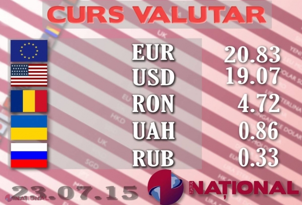 Banca Națională a Moldovei a stabilit pentru ziua de mâine un curs oficial de 20,83 de lei pe...
