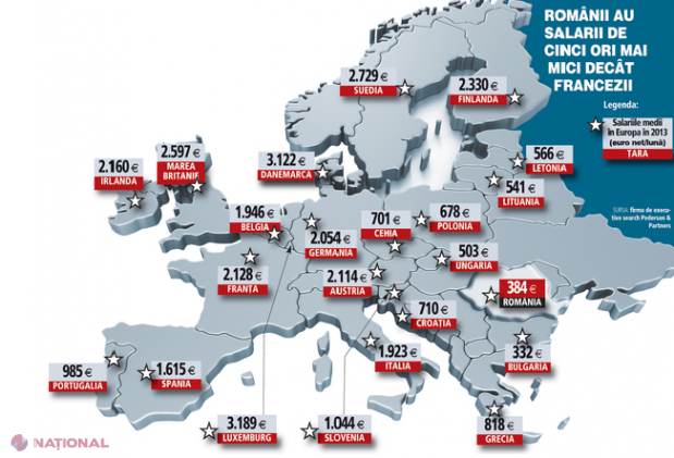 HARTA SALARIILOR medii din Europa. Unde se câştigă cel mai bine și locul R. Moldova
