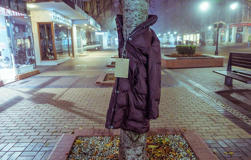 facebook.com Mai mulți copaci din centrul capitalei Bulgariei, Sofia, au fost îmbrăcați în aceste zile friguroase în geci groase care au atârnate de ele scrisorele adresate celor care îndură frig.