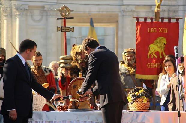 „Această înfrățire are loc în mod simbolic în Piața Marii Adunări Naționale, în prezența dacilor și romanilor, primii soldați ai Uniunii Europene. Este o înfrățire de suflet și de sânge, pentru a depăși obstacolele în calea integrării europene”, a declarat Dorin Chirtoacă, precizând că este sigur că, peste zece ani, Chișinăul, Kievul și Cernăuțiul vor fi parte a Uniunii Europene, împreună „cu toate națiunile care trăiesc în pace și prosperitate”.