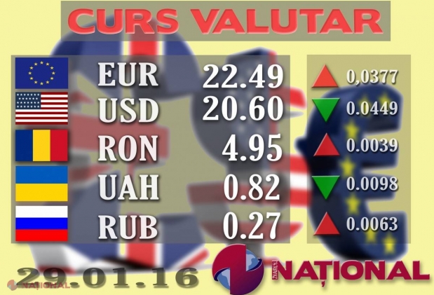 Banca Națională a Moldovei a stabilit pentru ziua de astăzi un curs oficial de 22.49 de lei p...