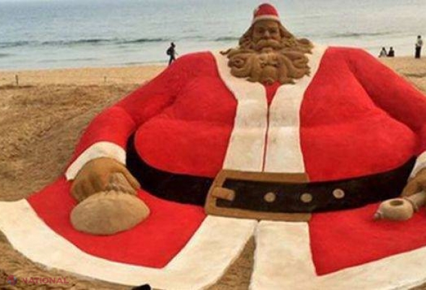 Cel mai mare Moş Crăciun din nisip, construit pe o PLAJĂ
