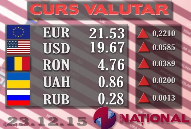Banca Națională a Moldovei a stabilit pentru ziua de azi un curs oficial de 21,53 de lei pen...