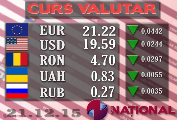 Banca Națională a Moldovei a stabilit pentru ziua de azi un curs oficial de 21,22 de lei pen...