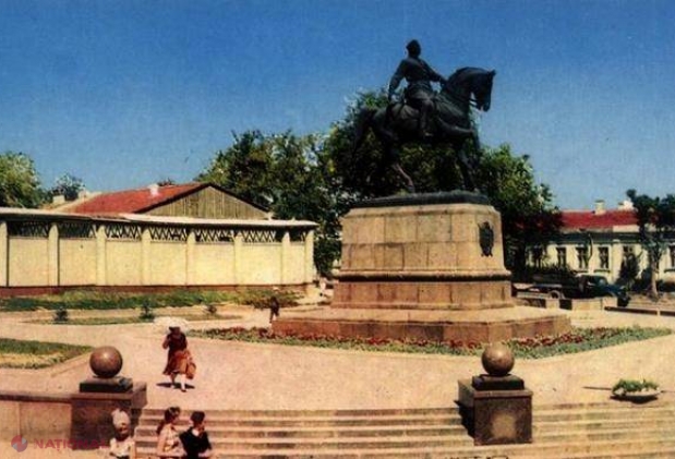 Monumentul lui Grigori Kotovski printre case cu un nivel sau două. Așa arăta, pe timpuri, zo...