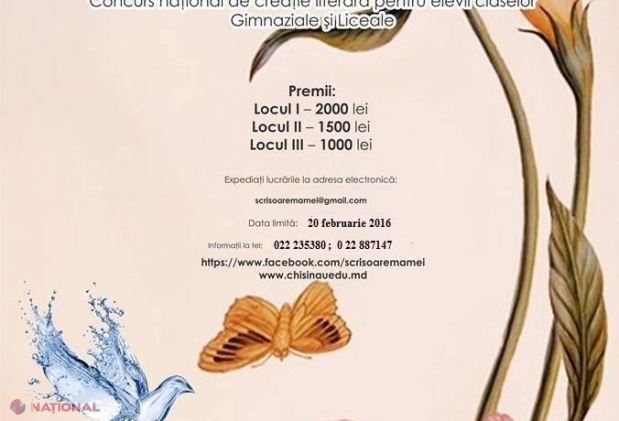 Concursul naţional „Scrisoare mamei” se desfăşoară în perioada 1 decembrie 2015 – 20 februa...