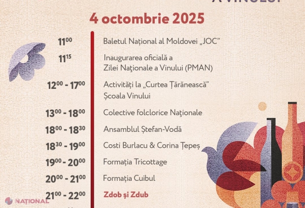 Ziua Națională a Vinului 2025: Chișinăul sărbătorește tradiția și inovația vinicolă în weekendul 4-5 octombrie