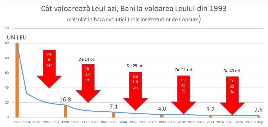 „Acum 25 de ani, leul nostru s-a născut într-o perioadă zbuciumată, cu inflație de mii de procente anual. A avut o copilărie foarte grea. În primul an s-a depreciat de 3 ori, iar la 5 ani de la introducere sa valoara doar 16,8 bănuți din cea ce a fost în 1993, înregistrând cea mai mare depreciare din istoria sa. În acest an, valoarea unui leu va fi echivalentul a 2,5 bănuți din momentul emiterii lui”, calculează Ioniță.