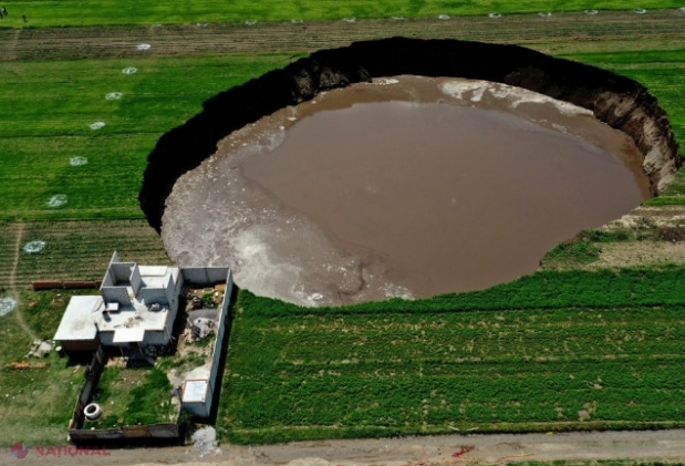 O groapă uriașă, cu un diametru de aproximativ 60 de metri, a apărut din senin pe un teren c...