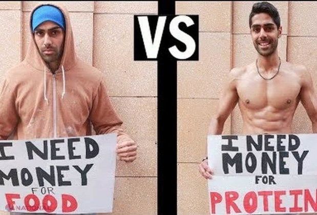 VIDEO EXPERIMENT // A cerut bani pentru mâncare și nu a primit nimic. Apoi și-a arătat „pătrățelele” și a cerut bani pentru proteine: ce a urmat