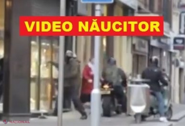 Video năucitor: o femeie pune pe fugă, cu o poșetă, un grup de infractori care spărgeau cu b...