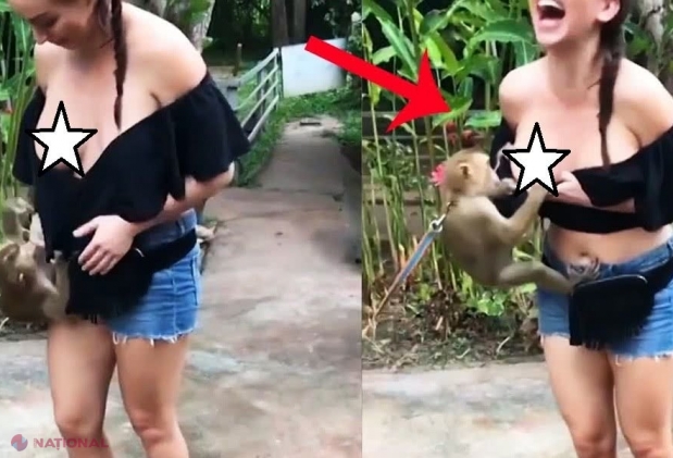 O maimuță obraznică a devenit vedetă pe internet, după ce i-a tras bluza de pe sâni unei turi...