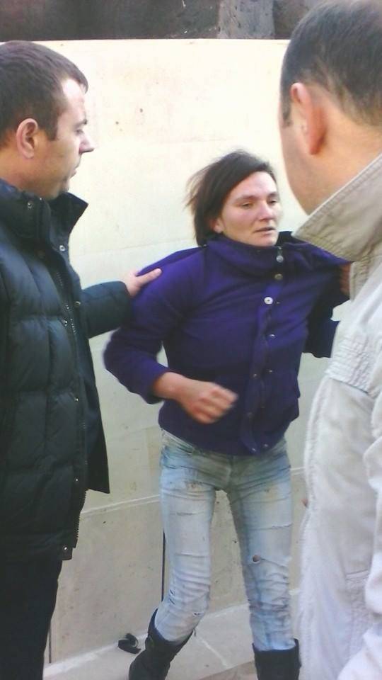Într-un final, femeia a fost dată jos și reținută.