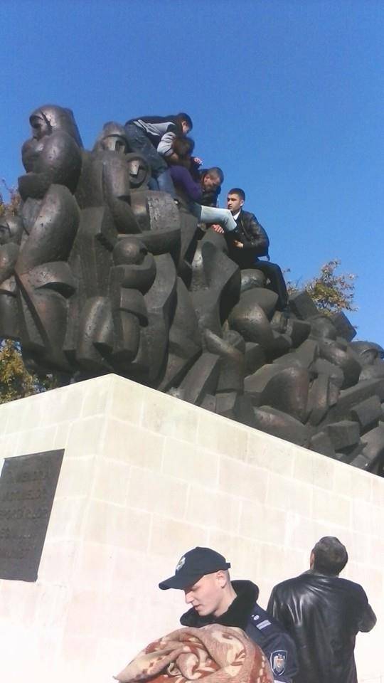 FOTO Chișinău // A vrut să se SINUCIDĂ, sărind de pe un monument, pentru că nu vrea în UE