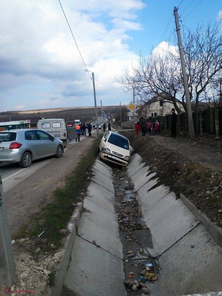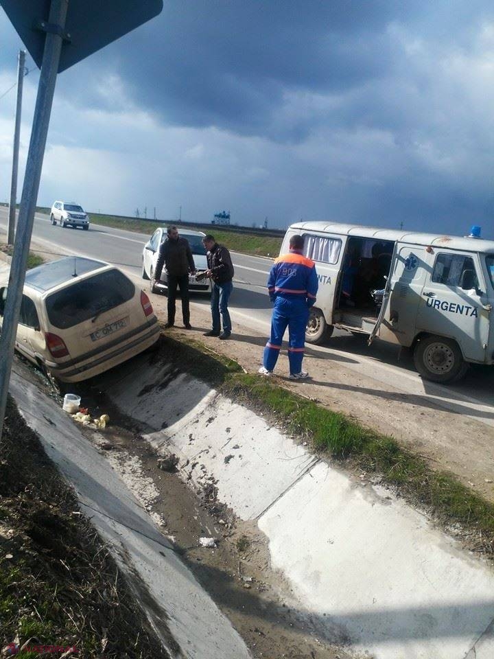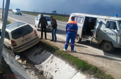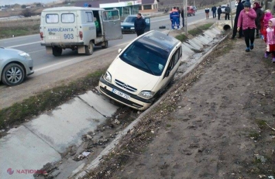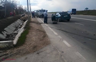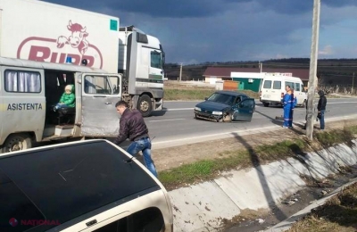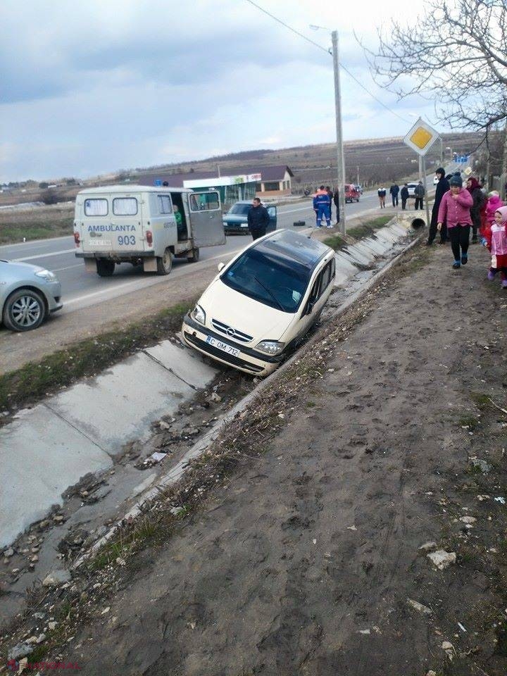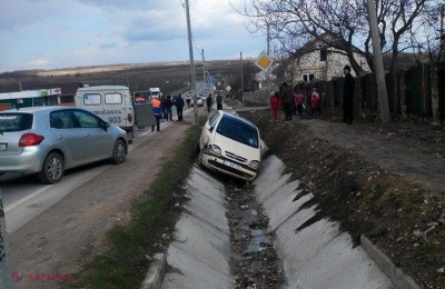 În maşina care a fost aruncată în şanţ se aflau trei persoane, între care un copil, iar în cea de pe carosabil – doar şoferul.