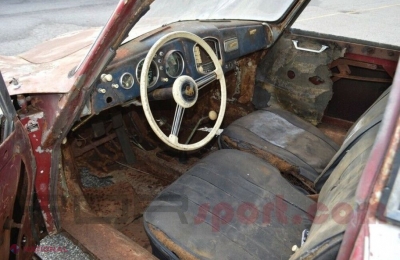 Cabina are o poveste similară. Cantităţi uriaşe de rugină sunt vizibile de-a lungul podelei, iar uşile şi toate suprafeţele interioare trebuie reconstruite. Readucerea acestui Porsche 356 la starea iniţială va fi foarte laborioasă şi costisitoare.