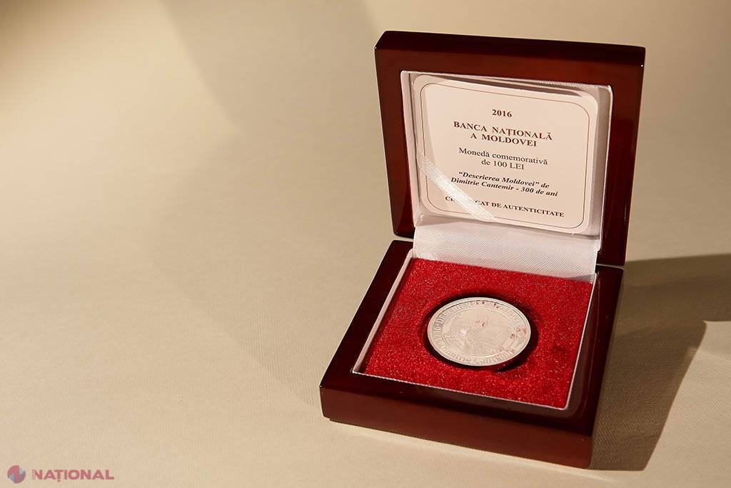 O altă monedă din argint suplimentează seria „Evenimente istorice” și este dedicată împlinirii a 300 de ani de la prima ediție a monografiei lui Dimitrie Cantemir „Descrierea Moldovei”. Moneda are valoarea nominală de 100 de lei, iar tirajul de 250 de unități.