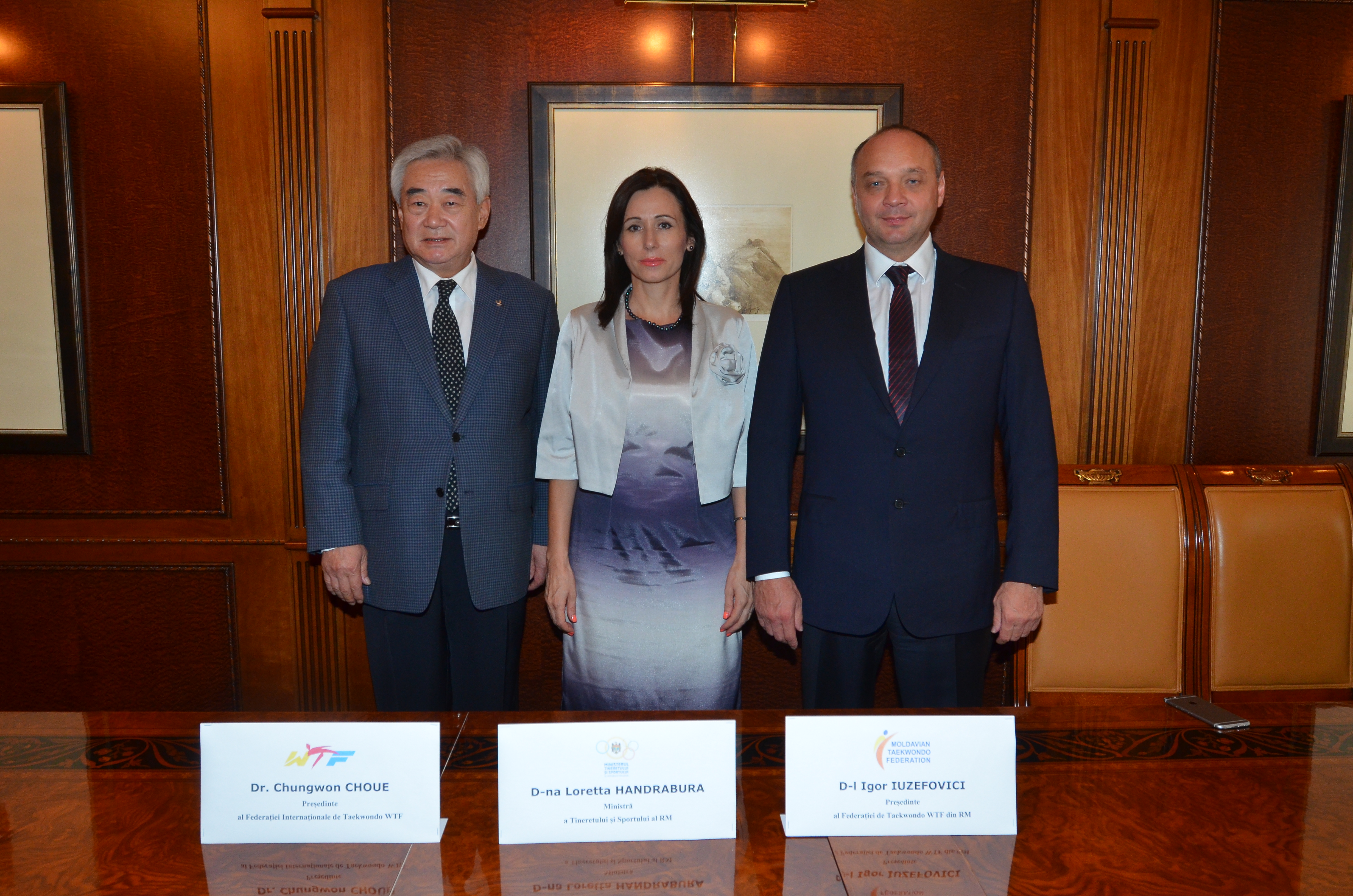 O colaborare de succes: dr. Chung Won Choue, președintele Federației Mondiale de Taekwondo WT, Loretta Handrabura şi Igor Iuzefovici