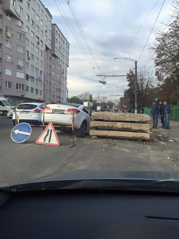 Un șofer ghinionist a ajuns, astăzi, cu mașină într-o groapă săpată pe str. Burebista din Chișinău.