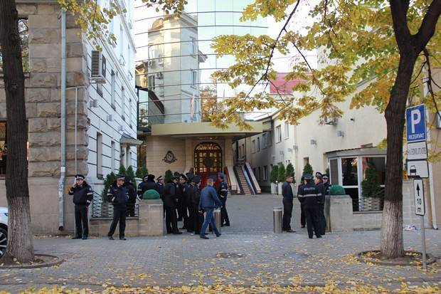 FOTO // Curtea hotelului „Nobil” și a „Global Business Center”, ÎMPÂNZITE de polițiști