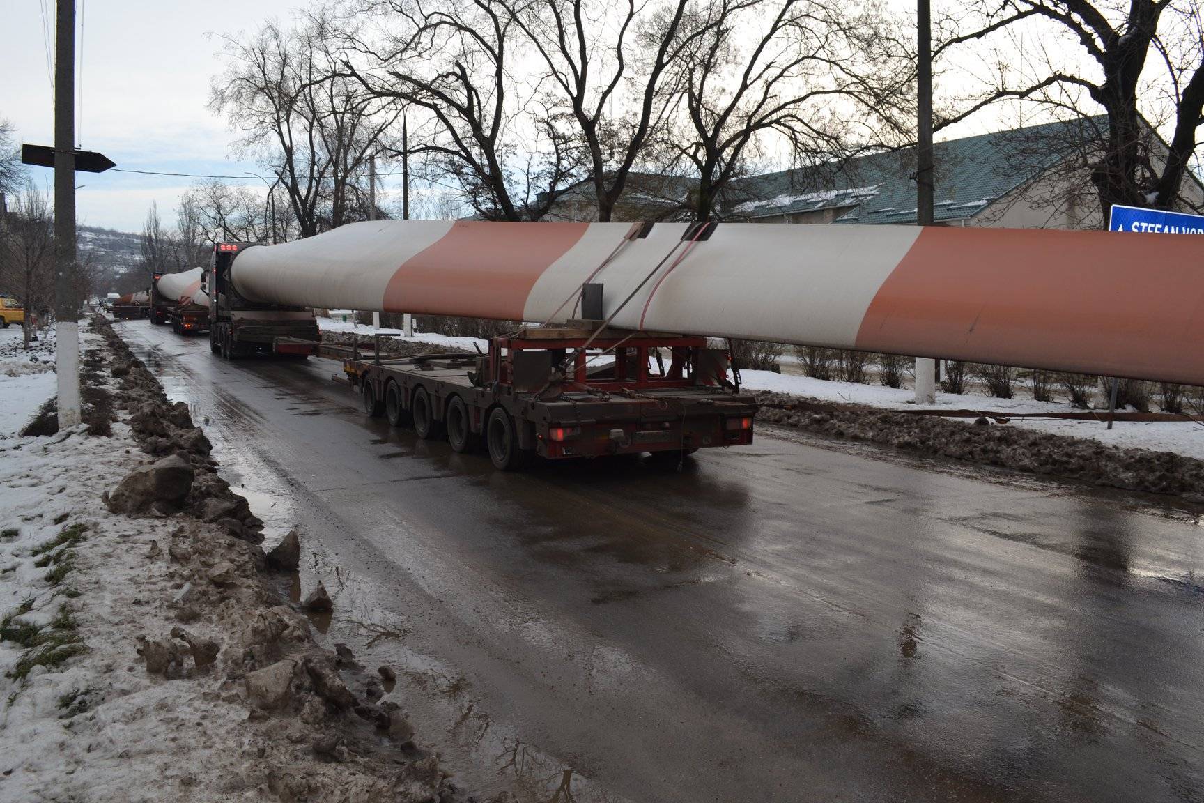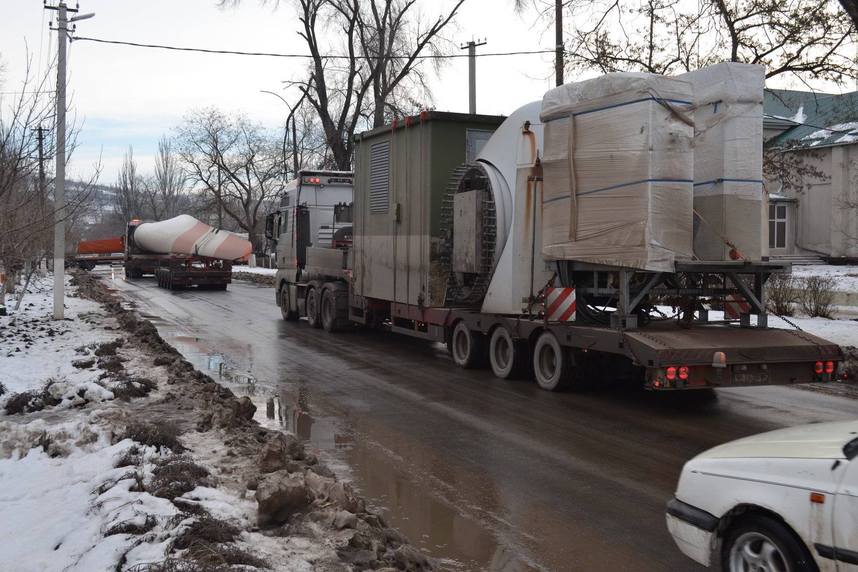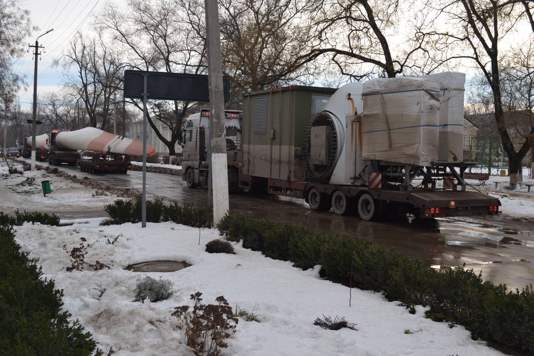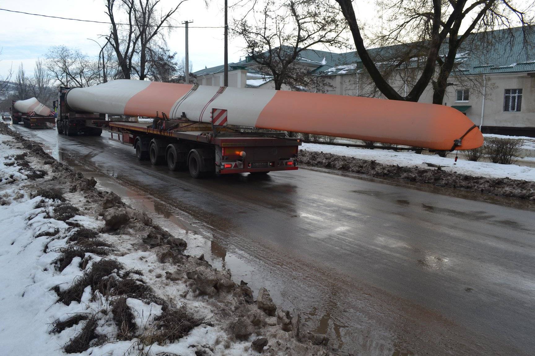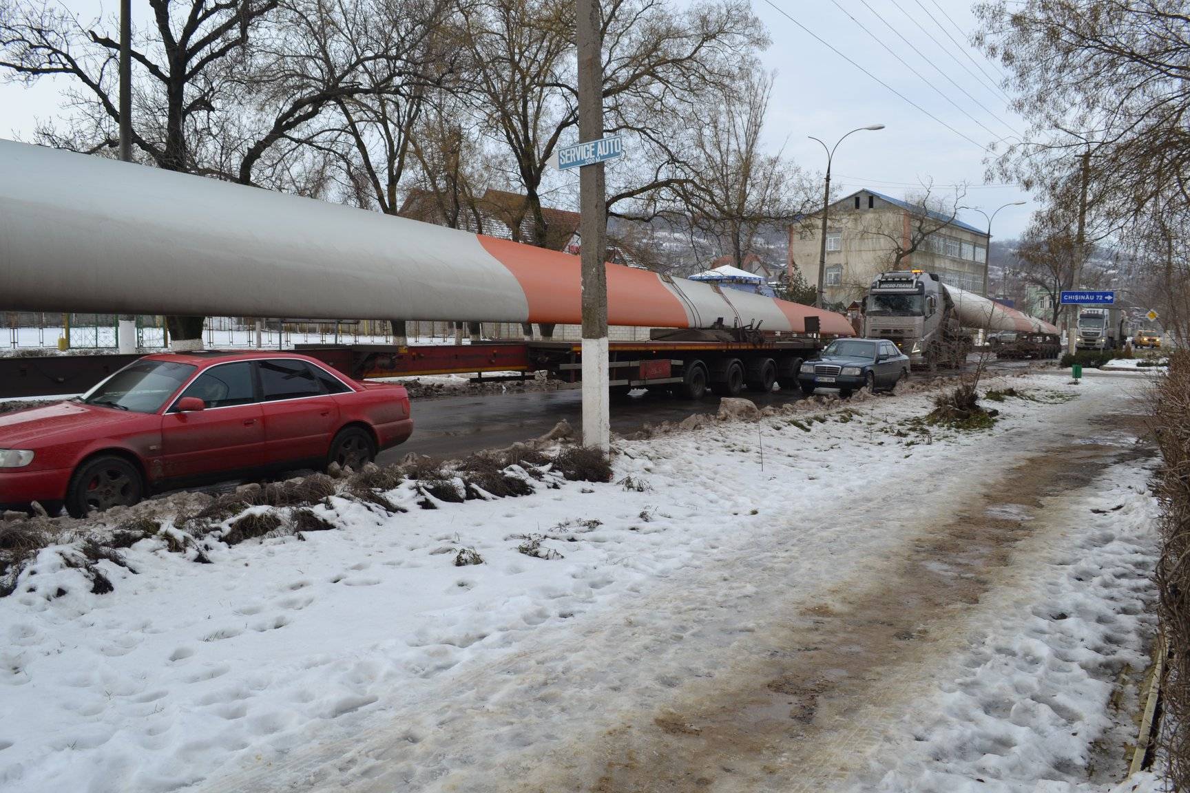Mai multe camioane de mare tonaj, care transportau două turbine eoliene dezasamblate, au traversat ieri orașul Căușeni.