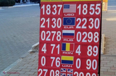 FOTO // EURO, vândut cu MULT PESTE 22 de lei la unele case de schimb valutar