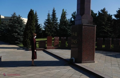 FOTO // Fără alai și megafoane: Președinta Maia Sandu a depus "în liniște" flori la Complexul "Eternitate" în memoria celor care au adus pacea pe continentul european