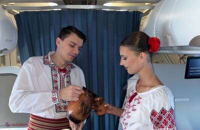 FOTO // HiSky celebrează Ziua UNIRII în zbor, cu echipaje în costume tradiționale și vin servit pasagerilor