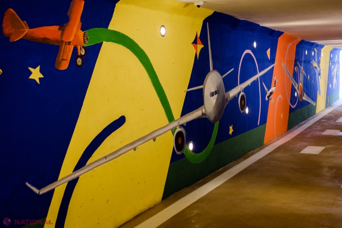 Pentru a reda trecerii subterane un stil urban deosebit, „Avia Invest” a contractat și un expert în picturi stradale, care a vopsit pe pereții subteranei imagini inspirate din aviație. La fel, în zona trecerii au fost amenajate bănci pentru trecători și plantate flori și iarbă verde, conchide sursa citată.