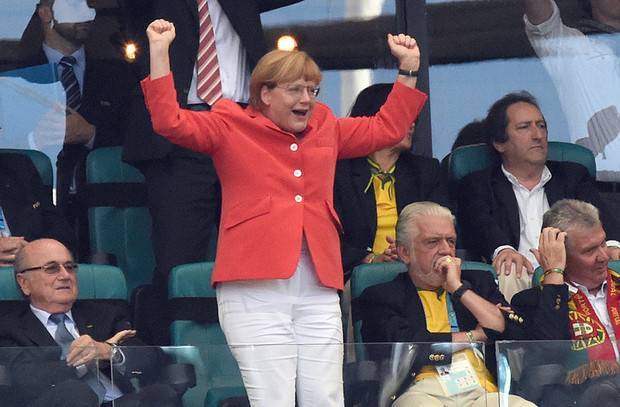 La partidă a asistat şi cancelarul Germaniei, Angela Merkel. Aceasta a trăit intens fiecare fază a nemţilor, sub privirile amuzate ale lui Sepp Blatter, preşedintele FIFA. La final, Angela Merkel a mers în vestiarul Germaniei pentru a-i felicita pe jucători, scrie prosport.ro.