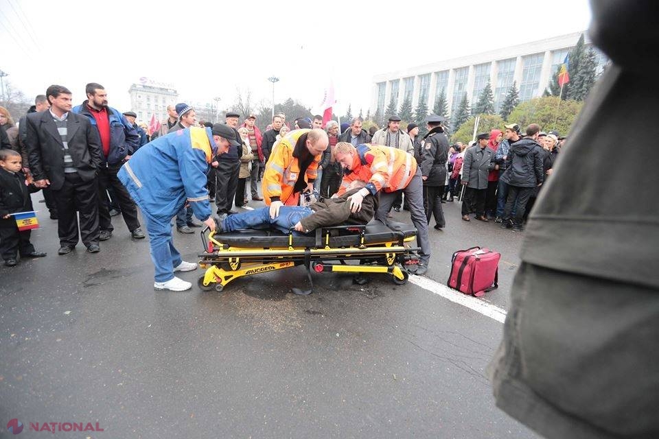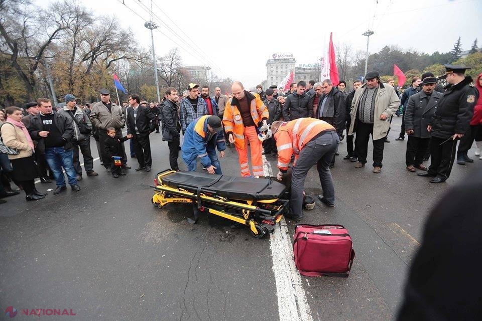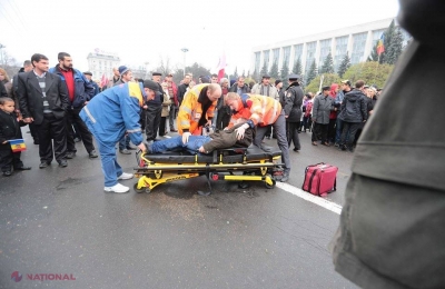 De asemenea, unii martori au spus că persoana a fost lovită de cineva, chiar dacă acolo erau prezenţi reprezentanţi ai forţelor de ordine. Cert este că alţi manifestanţi comunişti îi interziceau fotografului Ziarului NAŢIONAL să facă poze cu cei căzuţi pe asfalt.