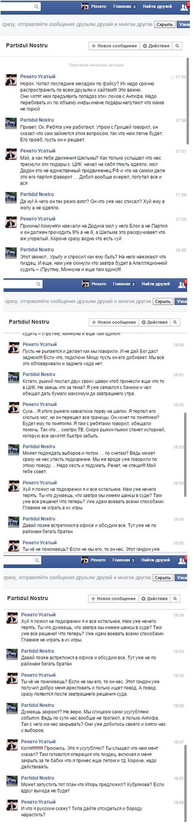 ru1.md Portalul bumerang.cc a publicat astăzi noi discuții de pe pagina de facebook a lui Renato Usatîi care ar fi avut loc pe data de 26 noiembrie 2014, cu o zi înainte de verdictul dat de Curtea de Apel Chișinău privind anularea înregistrării candidatului electoral - Partidul „Patria”.