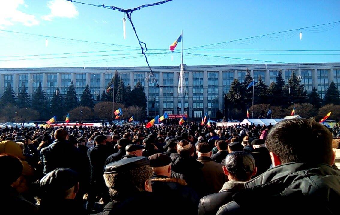 UPDATE (11.45 ): Petru Vlah, ex-deputat PLDM: „Eu am fost votul de aur din 2009 care nu l-a făcut de Voronin președinte și vedeți la ce am ajuns. Uitați-vă cum stăm noi aici, iar peste o stradă sunt alți oameni, aduși cu japca. I-am văzut azi, la Comrat, cum erau urcați în microbuz, pe listă. I-au adus ca pe niște oi. Locul lui Plahotniuc este la pușcărie, alături de Filat.
