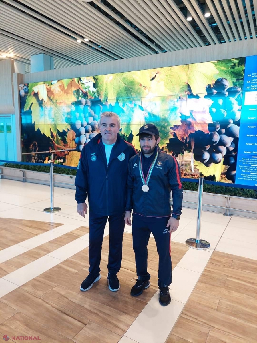 Acesta, împreună cu antrenorul său Mihail Cucu, au fost felicitați la sosirea pe Aeroportul Internațional Chișinău.