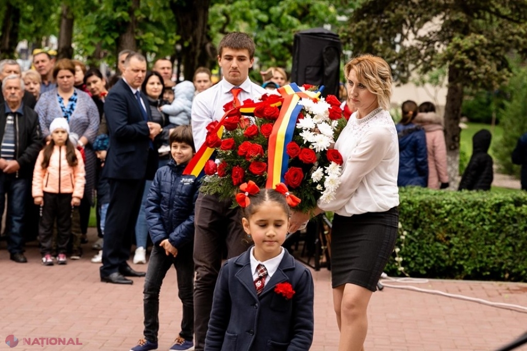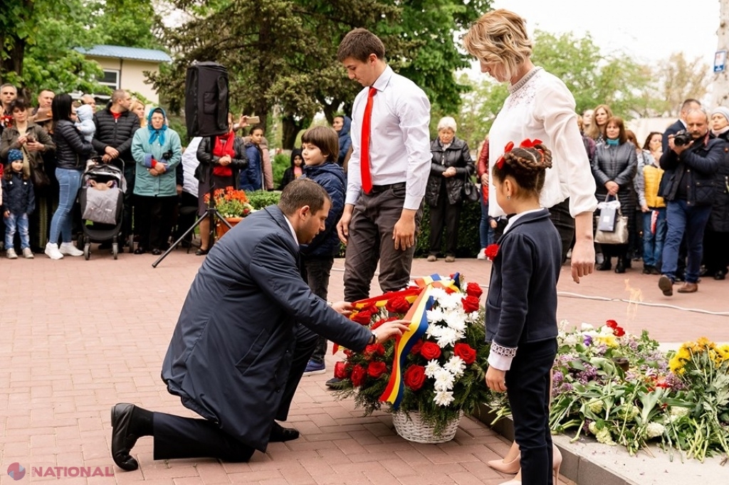 Cu flori în mâini, coloana s-a îndreptat din fața Primăriei Orhei către memorialul „Focul Veșnic”, unde cei prezenți au depus jerbe de flori și au ținut un minut de reculegere. Ajunși la memorial, oficialii au ținut un minut de reculegere în memoria eroilor căzuți pe câmpul de luptă și au depus flori, după care au ținut discursuri.