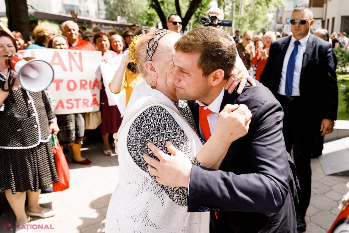 Venit la ședință, Ilan Șor a fost întâmpinat cu aplauze de manifestanții, iar unii au ținut neapărat să-l cuprindă și să-i transmită că „este un om cu literă mare”.