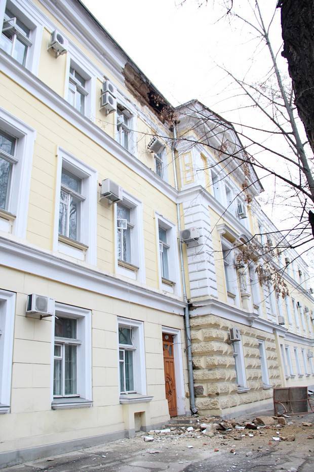 FOTO // O bucată din fațada unui monument de arhitectură din Chișinău s-a SURPAT în plină zi