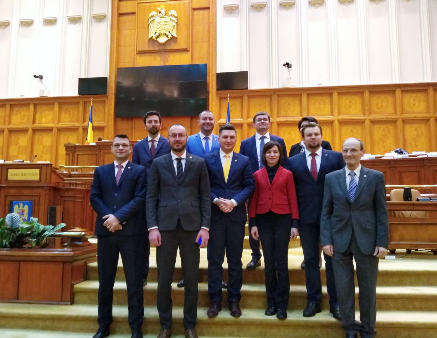 FOTO // O delegație de la PAS, condusă de Maia Sandu, vizită în Parlamentul României: „Am solicitat sprijin pentru susținerea administrației publice locale”
