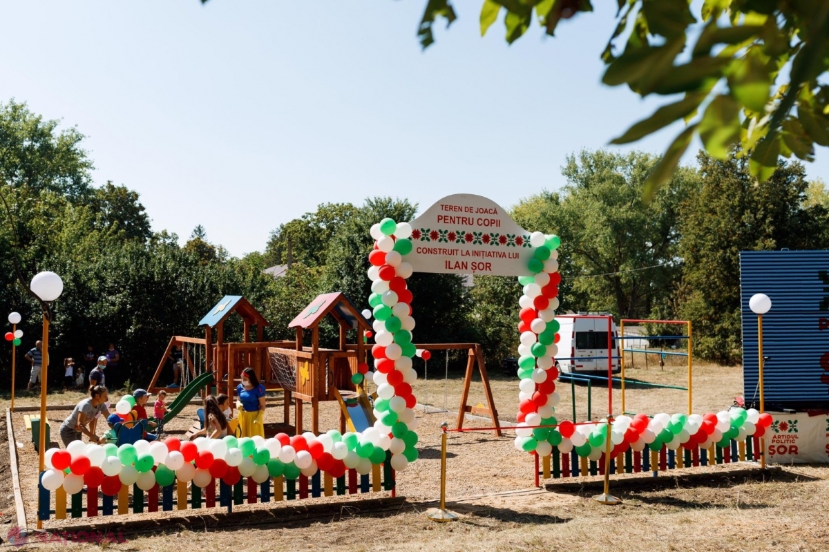 Proiectul „Câte un teren de joacă pentru copii în fiecare sat” a fost lansat de Ilan Șor la sfârșitul lunii iulie curent. Acesta prevede amenajarea terenurilor de joacă în fiecare localitate condusă de primari din partea Partidului „ȘOR”. Până acum au fost construite și inaugurate 14 terenuri de joacă pentru copii în localități rurale din diverse raioane ale țării, conchide sursa citată.