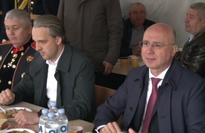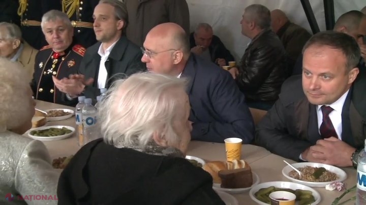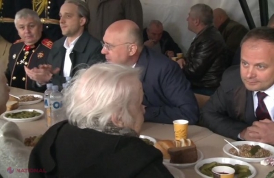 FOTO // Pavel Filip și Andrian Candu, la masă alături de veterani. Aceștia au mâncat terci ostășesc și castraveți murați