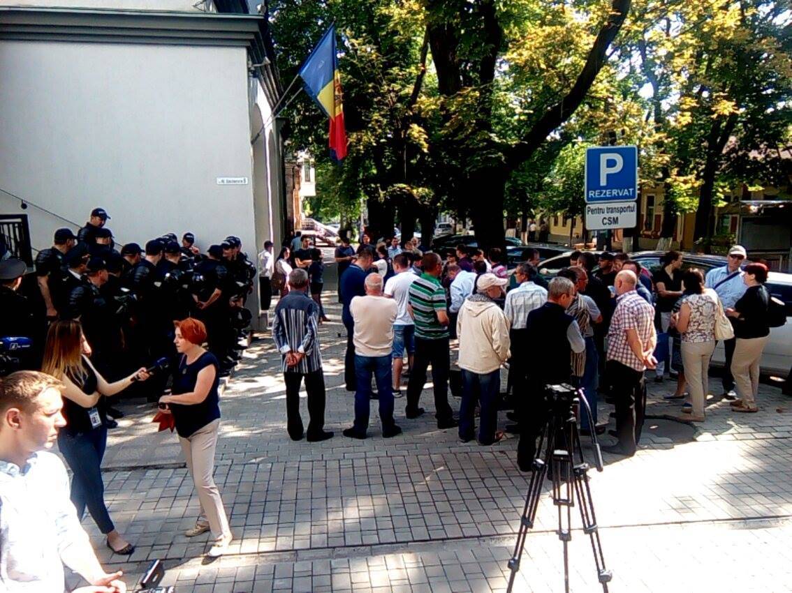 Oamenii scandează „Jos mafia!” și cer ședință deschisă în cazul Manole. Intrarea în instituție a fost blocată de câteva cordoane de polițiști.